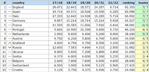 The Uefa Country Ranking (Also Known As The Uefa Coefficient) Is A Ranking List Drawn Up By Uefa That Makes It Possible To Compare The Strengths Of The Various Countries.